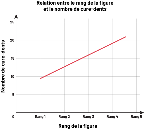 Les suites non numériques croissantes peuvent servir d’introduction aux représentations graphiques. Le rang des figures dans les suites non numériques croissantes correspond aux valeurs sur l’axe horizontal. La valeur du terme de chaque figure est représenté par les valeurs sur l’axe vertical. L’axe vertical représente aussi la valeur du terme qu’il y aura au rang 0 (la valeur de la constante), qui est l’ordonnée de la représentation graphique.