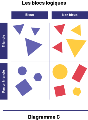 Diagramme C, dont le titre est Les blocs logiques, composé de deux rangées et de deux colonnes.1re colonne : Bleus1re