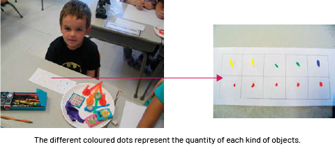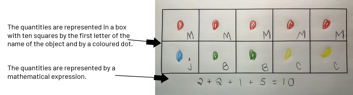 By using the ten frame, students are introduced to a more symbolic representation of a number of objects, which calls on their capacity for abstraction.