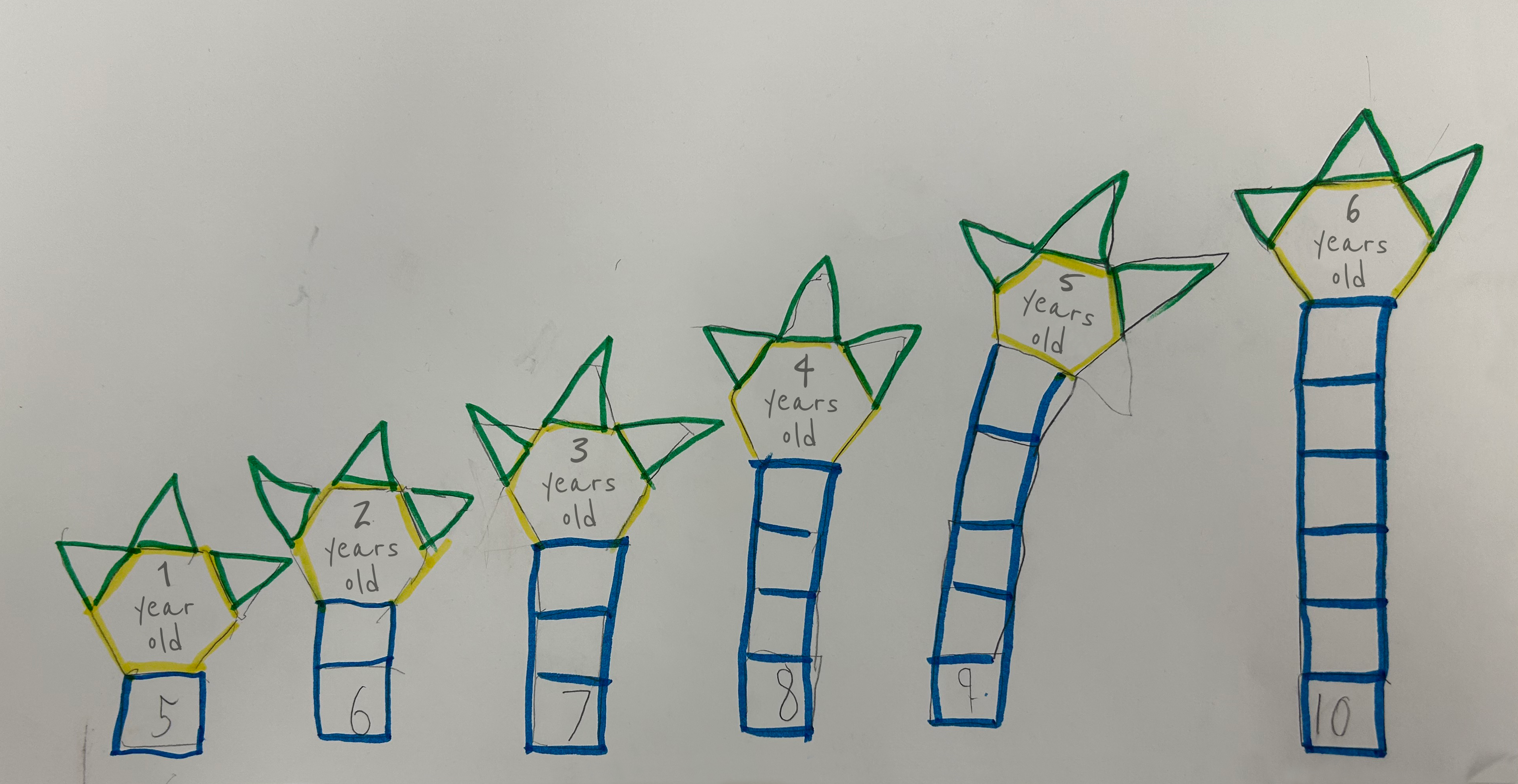 Although in Grade 1 students are not required to define functional relationship, informal discussions dealing with the relationships between shapes and the number of elements that make them up can take place in determining the pattern rule and extending the pattern.