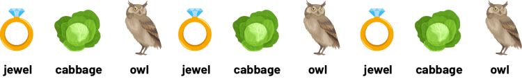 - the pattern rule (the chicken is first, followed by the goose, followed by the cat, followed by the dog).