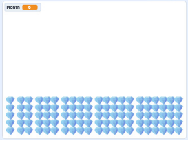 Highlight to students that representing the problem with manipulative was possible in this situation, but using a code would be helpful if we wanted to determine the amount of money in the piggy bank over a longer period of time.