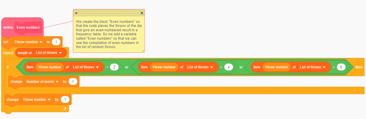 In which list should you find the even numbers? What variable do you need to add to search for even numbers? (I need to add the "length of the roll list", so that the entire roll list will be repeated) ![]()