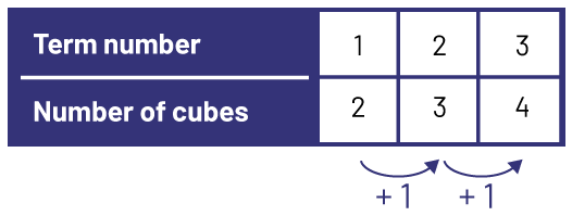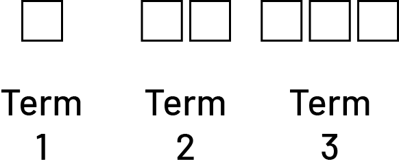 To recognize a growing geometric pattern, we must look for the relationship between each figure (pattern rule), or the pattern between the term number and the term value (functional relationship). The number of elements that make up a figure increases from one term to the next.