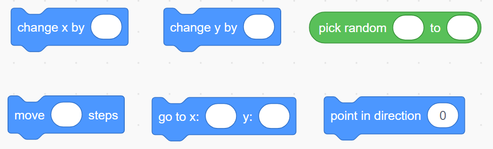 Ask the students to choose a sprite and place it at the coordinates (0, 0) of the Cartesian plane. In order for it to be at coordinates (0, 0) at the start of the game, the "go to" block could be added at the start of the code (after the green flag).
