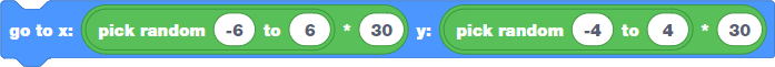 - One could use the "go to random position" block, which eliminates the predictability of the sprite's location.