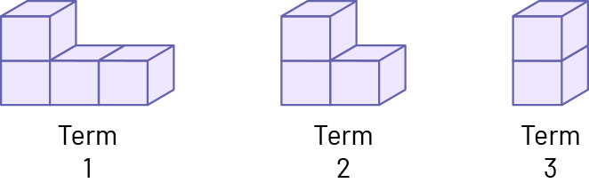Starts with three tiles in position 1 (constant) and, for each subsequent term, it increases by four tiles: