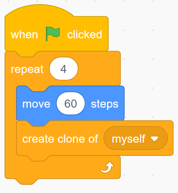 Here is an example of pseudocode to associate costumes to the result obtained after rolling a die. Here, we use the "if, then, else" command to obtain several possibilities.
