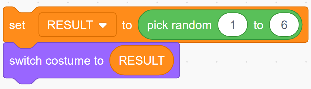 SET "RESULT" TO (RANDOM NUMBER 1-6) |