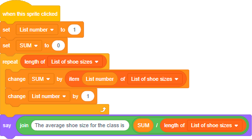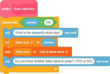 For example, to calculate the mean of a set of data, the student will need to be familiar with how to perform this calculation in order to choose the right commands or blocks to achieve this goal. Here is an example of code that would calculate a mean: