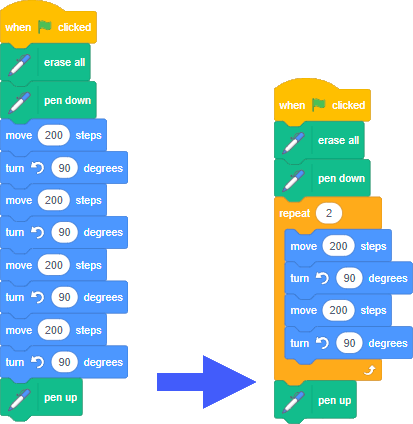 Repeating events. In coding activities, loops are used in code to repeat instructions.