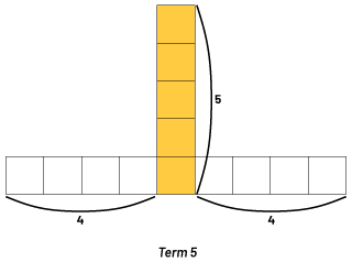 Using the following questions, encourage students to analyze the pattern and relate the term number with the number of squares it has: