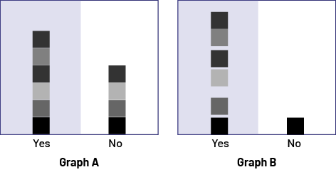 Image Two diagrams, Diagram A and Diagram B, each divided into two columns, Yes and No. Diagram A, column Yes: six stacked objects Diagram A, column No: four stacked objects Diagram B, column Yes: six objects stacked with a space between them. Diagram B, column No: one object