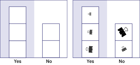 Image Two diagrams, each divided into two columns, Yes and No. In the first, three papers are stacked in the Yes column and two in the No column. In the second one, there is, on each of the three papers in the Yes column, a note clip of a different size. In the No column, there is also a note clip on each of the two papers.