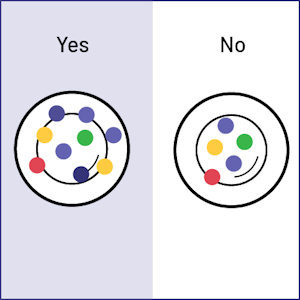 Image Box divided in two. On the Yes side, one container contains four blue chips, two yellow chips, one red chip, one black chip and one green chip. On the No side, one container contains two blue chips, one yellow chip, one red chip and one green chip.