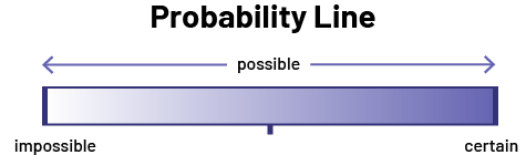 Image Under the title "Probability Line", the word "possible" appears between two arrows pointing to the extremes of the progressive bar below. The bar starts with white and gradually turns dark blue. On the far left is the word "impossible", and on the far right is the word "certain".