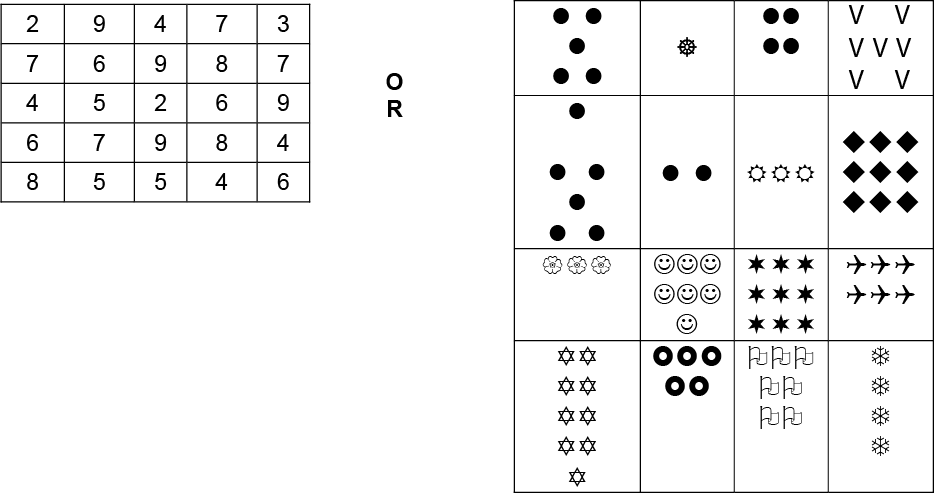 * The grid can be filled with numbers or drawings.