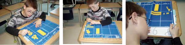 The choice of materials available to students can also make a difference to their level of understanding of concepts. There are a variety of materials on the market to represent numbers: marbles, interlocking cubes, or any other object that can be used to count. Some of these materials clearly and concretely represent the magnitude relationship between ones, tens, hundreds, etc. (for example, the base ten material used in the previous photos). By exposing students to a variety of manipulatives, teachers can help them develop a better understanding of numbers.