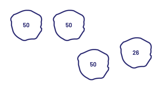Visual Representations: A number can be represented by drawings in order to illustrate certain groupings. For example, the number 176 can be illustrated in groupings of 50 as follows: