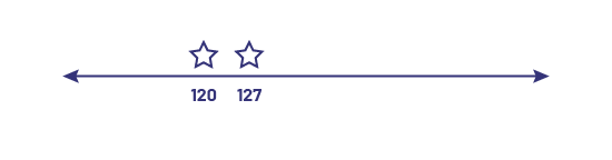 Number line: In the primary grades, students use and construct number lines to count by intervals or to identify the number of tens in a number. Using and constructing a variety of number lines allows students to represent larger numbers and recognize relationships between them. The following are representations of 127 on number lines: