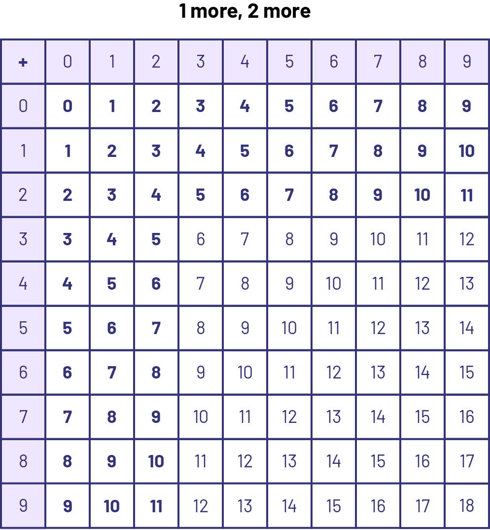 For the basic number facts \(5 + 1 = 6\), \(5 + 2 = 7\), \(7 + 1 = 8\), \(7 + 2 = 9\), one of the terms in each addition is 1 or 2. The strategy is based on the assumption that students can easily remember the number that follows the larger number, or can easily count on from it.