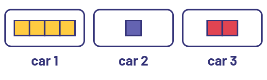 Introduce students to three train cars constructed with interlocking cubes of different colours.