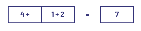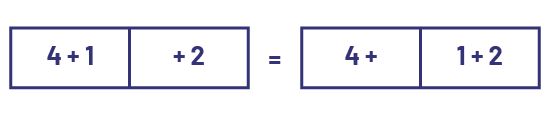 Note: If students are familiar with the commutative property, some may change the order of the terms to be added (for example, (4 + 2 + 1)). If so, ask them to justify why the order can be changed. Otherwise, simply mention that the order of the cars cannot be changed, since they are attached to the engine in this way.