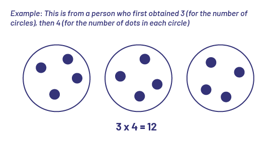 - then writes a number sentence that represents the multiplication (for example, if there are 3 circles containing 4 points each, writes 3 × 4 = 12).