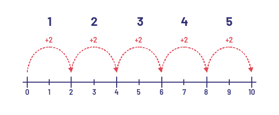 \(2 + 2 + 2 + 2 + 2 = ?\) or \(5 \times 2 = ?\)