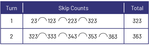 Clarify that the object of the game is to be the first team to reach 500, without going over that number, and that each team starts counting from its starting number by 1s or by intervals of 10 or 100.