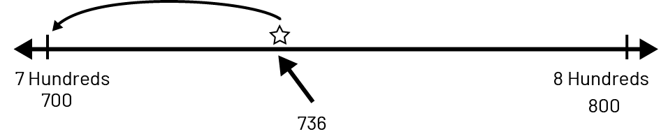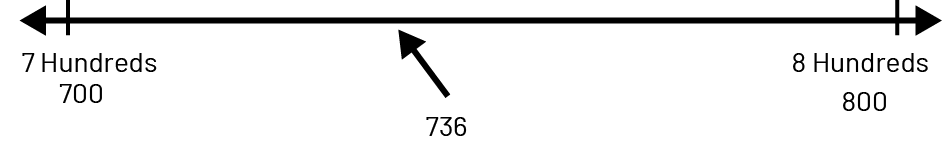 In the example, the clerk needs to understand that 736 is between 700 and 800, but it is closer to 700. Therefore, the rounding results in 700. |