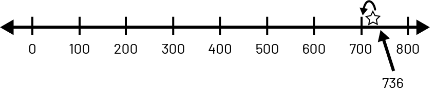 Round up the number Students should grasp that rounding is done using values close to the number. For example, 736 rounds to 700, because it is closer to 700 than to 800. Note: If the number is an equal distance between two values, rounding is usually to the higher of the two values. For example, 750 is rounded to the nearest hundred to 800. |