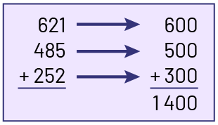 Since on a daily basis, estimations are often the result of informal mental calculations, it is appropriate that students practice and learn to estimate in this context. Teachers should therefore ask them to estimate the result of an operation (without using paper and pencil) and to communicate this approximate result (for example, \(346 + 516\) is close to 850).