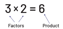 To properly assimilate multiplication, students must understand that the 2 factors do not play the same role. Frequently, a number sentence like \(3 \times 2 \) reads "3 times 2". In this interpretation, the factor 3 represents 3 groups, while the factor 2 represents 2 items in each group.