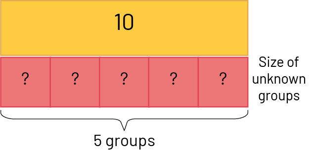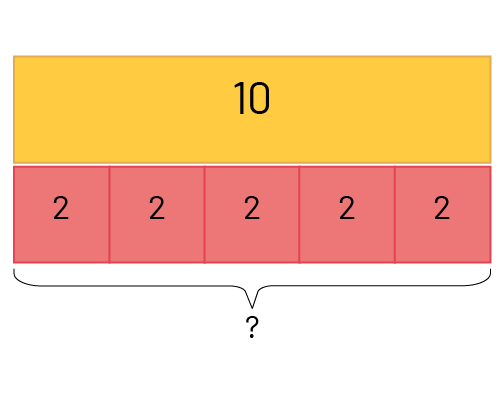 or \(10 \div 2 = \mathord{?} \) or \(\mathord{?} \times 2 = 10 \)