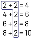 \(2 + 2 + 2 + 2 + 2 = \mathord{?} \) or \(5 \times 2 = \mathord{?} \)