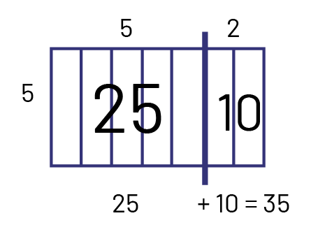 I decomposed 7 into \(5 + 2 \), and used my (\(5 \times 5\)) + (\(5 \times 2\) ) facts.
