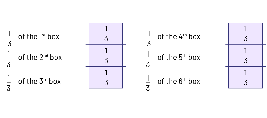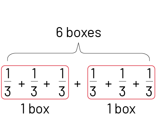 To count the number of thirds, I will represent the 6 one thirds of each box in a diagram.