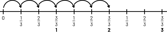To help me, I represent the 6 leaps of \(\frac{1}{3} \) on a number line.