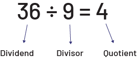 In division, a quantity is separated into equal groups. The dividend represents the quantity to be divided, while the divisor and quotient represent respectively the number of groups and the size of the groups if the division is partitive or, the opposite, if the division is quotative.