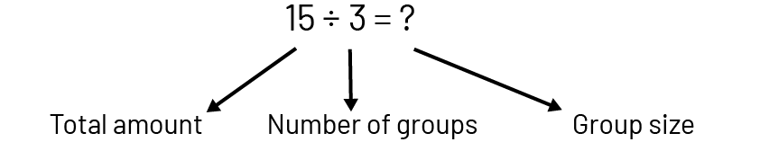 In problems presented to students, division is too often associated with only one of its meanings, namely equal sharing (partitive division). The equal grouping meaning (quotative division) is usually neglected. Division has a partitive meaning when the total quantity and the number of groups are known (for example, 3 students want to share 15 apples equally and we are looking for the number of apples each person will receive).