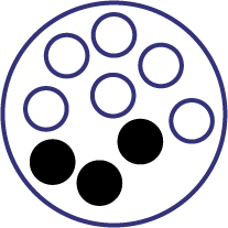 In this set of 9 marbles below, there is a ratio of 1 to 2, \(\frac{1}{2} \) or 1:2 between the number of black marbles and the number of white marbles.