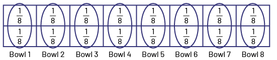 There are 6 bowls and 8 bananas, so on a grid paper I drew 8 rectangles. Each rectangle represents 1 whole banana. I distribute the bananas into the bowls.
