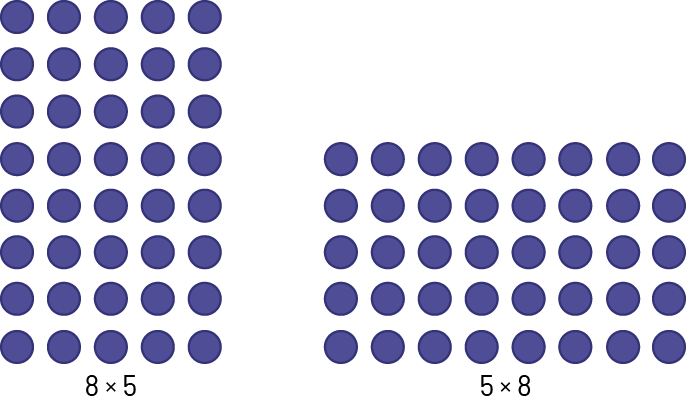 Ask students to represent \(5 \times 8\) and \( 8 \times 5\) using arrays: