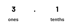 It is important to distinguish between the digit in the tenths position and the amount of tenths in the number. For example, in the number 2.1, the digit in the tenths position is 1, but it could also be said that there are 21 tenths. Thus, if we want students to identify the digit in the tenths position of a number such as 2.3, we should ask the question "What digit is in the tenths position in the number 2.3?" rather than "How many tenths are in the number 2.3?