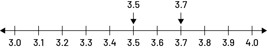 Ordering should be addressed by comparing decimal numbers in contextualized situations. For example, "Remi jumped 3.5 m and Samantha jumped 3.7 m. Which of them had the longer jump?" Students can respond and justify their choice if they understand place value and magnitude. The number line is a powerful visual model for comparing decimal numbers. To place 3.5 and 3.7 on a number line, students can represent the tenths from 3.0 to 4.0. They can then conclude that 3.5 < 3.7, so Samantha has made a longer jump than Remi.
