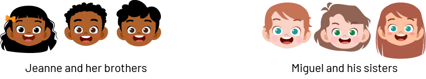 Next, teachers do the same with two children who have exactly three siblings. The total number of children is represented by \(\ 2 \times 3\) children, for a total of 6 children (Figure 2).