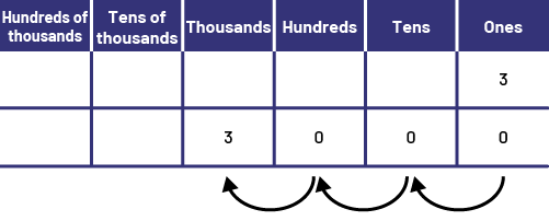 Then the product of \(\ 3 \times 1\;000\) is 3000.