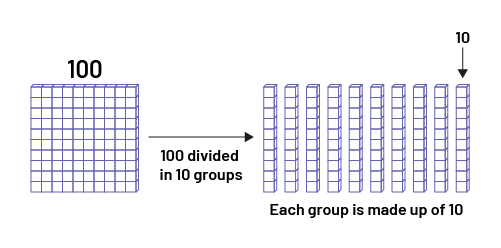 There is one group of 100 that is decomposed into 10 groups of 10.