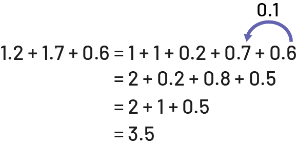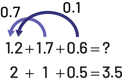 I know that 0.8 + 0.2 = 1 so I mentally move 0.7 and 0.1 to 1.2, which means: I then have 2 plus 1 and 5 tenths.